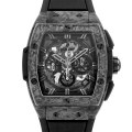 - 大人気スピリット オブ ビッグバンより、珍しい「ヨシダスペシャル」が入荷しました。こちらは、ケースの風合いが特徴的な一本です。素材使いに関しては一家言持つ同社が当モデルに選んだのは「フロステッド・カーボン」。スイス アルプス山脈に連なるマッターホルンの岩肌をイメージして開発したと言う新素材で、きわめて独創的なデザイン性を獲得しました。シースルーの表裏からはキャリバーHUB4700をご鑑賞いただけます。10気圧防水。パワーリザーブ約50時間。