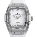 - ウブロのトノーウォッチ「スピリット・オブ・ビッグバン」のレディースモデルが入荷いたしました。チタンケースのベゼルには50個(約1カラット)のダイヤモンドをちりばめた、白を基調とした爽やかなモデルです。ムーブメントはパワーリザーブ50時間の自動巻きHUB1710を搭載。10気圧防水。2018年発表モデル。