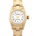 - シンプルながらロレックスらしい機構と高級感を誇るオイスターパーペチュアル。デイトジャストよりもリーズナブルな価格でバリエーションが豊かな為、年代を問わず幅広い層に受け入れられています。こちらは、生産数が少なく希少性の高いオールイエローゴールドモデルです。文字盤のホワイトとセンターローマインデックスの組合せが個性的で、他の方と一味違う時計をお求めの方にもお薦めです。