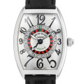 - フランクミュラーの斬新で遊び心ある数々のコレクションは、今から十年前に発表されたこのヴェガスから始まりました。カサブランカやコンキスタドールと並び、フランクミュラー人気を加速させたコレクションのひとつです。フランクはこの時計で、正確さと偶然という二つの要素が織り成す微妙な遊び心を表現しました。ダイヤルにはルーレット盤がデザインされており、リューズ先端にセットされたボタンを押すとルーレット針が目にも止まらぬスピードで回転します。ボタンを離せばダイヤル上のいずれかの数字に停止します。どの数字に止まるのか。それは全くの偶然にゆだねられているのです。