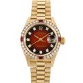 - 男女問わず永遠のステータスシンボルとも言えるロレックス“デイトジャスト”。その中でも最高峰に位置するイエローゴールド製のこちらは、暗めの茶色が上品なブラウングラデーションダイアルに10個のダイヤモンド、ベゼルに32個のダイヤと4個のルビーをセッティングした贅沢で豪華なデザインになっています。他のモデルとは異なる装飾が施されており、特別な一本をお探しの方にお薦めです。
