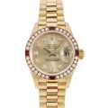 - レディースロレックスの中でも最高峰に位置するイエローゴールド製のデイトジャスト。様々なバリエーションが存在しますが、こちらはシャンパンゴールドのダイアルに10粒のダイヤモンド、ベゼルに32個のダイヤと4個のルビーをセッティングした、高級感溢れる華やかなデザインです。他のデイトジャストではあまり見かけることのないゴージャスな装飾が施されており、人とは違った存在感ある特別な1本をお探しの方にお勧めです。