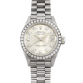 - ロレックスの三大機構(オイスターケース、パーペチュアル機構、デイトジャスト機構)を全て備えたデイトジャスト。1945年に登場し、現在ではレディース・ロレックスの顔と言うべき存在になりました。こちらのモデルは、ベゼルとインデックスにダイヤモンドを配し、ラグジュアリーな雰囲気を醸し出しています。
