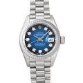 - ロレックスのロングセラー・デイトジャスト。レディース時計の金字塔でもありますね。ドレッシーで上品な装いを備えつつも、堅牢なオイスターケースおよび時計業界に一石を投じたデイトジャスト機構、パーペチュアル機構によって優れた性能をも発揮します。こちらは、ブルーグラデーションが鮮烈な一本です。さらにホワイトゴールドケース・ブレスレットによって、控え目な高級感を醸し出すこととなりました。一生ものの時計としてもお勧めです。