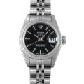 - 上品でドレッシーなのにオールステンレスで汎用性の高い「オイスターパーペチュアル」。こちらはブラックダイアル・バーインデックスでシックに仕上がった一本です。「エンジンターンドベゼル」と呼ばれる、ギザギザとポリッシュが規則的に並ぶ独特なパターンのベゼルが特徴です。ビジネスにも華やかなパーティーシーンにも、手元に彩りを添えてくれます。