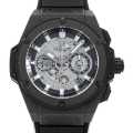 - ウブロの大ヒットモデル「ビッグバン」の進化系「キングパワー」。自社の研究・開発部門で独自に開発された完全自社製ムーブメントウニコ(Cal.HUB1240)を搭載したモデルです。ダイアル側にすべてのクロノグラフ機構が配置されているため、コラムホイールの動きがダイアルからご覧頂けます。ケースにはブラックカーボンとラバー素材が使われており、軽量性と耐久性に優れた一本に仕上がっています。