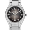 - レディース時計の金字塔と言えば、パテックフィリップ トウェンティ4の名を挙げる方は少なくないでしょう。「24時間女性の腕に」というコンセプトのもとに生まれた銘品で、長らくレクタンギュラーフォルムが親しまれてきましたが、2018年よりラウンドケースでリニューアル。こちらは、縦横2方向にサテン仕上げを施した一本です。ベゼルにセッティングされた、160個のきらめくダイヤモンドの輝きで、特別な時間をお過ごし頂けることでしょう。