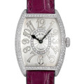 - ケース、ベゼル、ラグ、尾錠、ダイアル中央にダイヤモンドをセッティングしたゴージャスなモデルです。宝飾職人の手で一粒一粒入念にセットされたダイヤモンドは、トノー型の美しいケースを強調し、完璧な均衡を保つように繰り返し計算された曲線美をより一層際立たせています。厳重な素材の選択と厳密な手作業が守られ続けているフランク・ミュラーの工房では、使用するダイヤモンドは常に最高グレードのみを厳選。「トップ・ヴェッセルトン」VVSのダイヤモンドが極上の輝きを生み出しています。