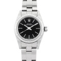 - 金属塊から削りだした防水性の高いオイスターケースと、全回転式ローターを搭載したパーペチュアル機構を搭載した“オイスターパーペチュアル”。デイトジャストよりもリーズナブルで、ダイアルコレクションが豊富に揃い、ケース違いでバリエーションが豊かなため、年代を問わず幅広い層に受け入れられています。こちらはスタンダードなブラックダイアルにシンプルなバーインデックスが配置された、スタイリッシュなデザインです。