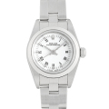 - 上品なホワイト文字盤のオイスターパーペチュアル。ベーシックで使いやすいオールステンレスモデルです。文字盤のホワイトとセンターローマインデックスの組合せが個性的で、他の方と一味違う時計をお求めの方にもオススメです。