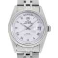 - こちらはロレックスのデザインを踏襲していた頃の人気モデル“プリンス・デイトデイ”です。デイトジャストを彷彿させるオーソドックスなスタイルのため、飽きずに長く使えるデザインと言えるでしょう。大きく見やすい日付窓にフルスペルの曜日表示と使い勝手は抜群です。ロレックス譲りのオイスターケースは36ミリ。手首へのフィット感も優れております。