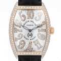 - 流麗なカーブを描くケースラインが特徴的な"トノーカーベックス"で一躍人気を博したフランク ミュラー。2003年に発表された"クレイジーアワーズ"は、時針が通常の順番ではなく、不規則にジャンプするという独創的な機構を搭載し、時計の常識を覆した象徴的モデルです。その中でもこちらは10周年記念に発売された世界限定10本の大変希少なモデルです。裏蓋には10周年の刻印がされており、インデックスやケースにダイヤモンドがあしらわれ華やかなデザインとなっています。