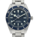 - 人気モデル"ヘリテージ ブラックベイ"の2020年発表モデルです。ドーム型ガラスを備えた200m防水ケースに、COSC認定の自社製キャリバーMT5402を搭載。ブルー文字盤とブレスサイドのリベットによって、味わい深いタイムピースに仕上がりました。