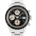 - ロレックス“コスモグラフ・デイトナ”をリスペクトしたチューダーのハイスペッククロノグラフ。 他のシリーズ同様、ロレックスのパーツを流用し、実用度や機能面でもデイトナと遜色のない性能を誇ります。こちらのモデルは「T SWISS MADE T」表記の後期ダイヤルとなっており、裏蓋とリューズにはロレックスのロゴ、バックルにはチューダーのロゴがございます。マニアックなまでのディティールやバリエーションなど、奥が深く多くのファンに愛されている79160です。