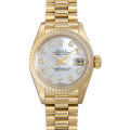 - 男女問わず永遠のステータスシンボルとも言えるロレックスの“デイトジャスト”。こちらはダイアルにホワイトシェルを使用した上品なモデルです。ケース、ブレスにはイエローゴールドを使用し、インデックスには10粒のダイヤモンドをセッティング。人と被らない特別な1本をお探しの方にお勧めです。
