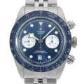 - こちらの"ブラックベイ クロノ"は、コラムホイールと垂直クラッチを採用した高性能自動巻きマニュファクチュールキャリバーを搭載する、正統派スポーツクロノグラフモデルです。コントラストの際立つサブカウンターが美しいブティック限定モデルになります。チューダーが誇る豊かな青の伝統をコレクションの全ラインに取り入れるという、熱い思いを示している1本です。