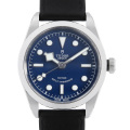 - チューダーの人気モデル“ヘリテージ・ブラックベイ”。2018年発表のRef.79500が入荷致しました。回転式だったベゼルはシンプルなステンレス製に変更、ケース径も36mmにダウンサイジングされ、よりすっきりとした印象となっています。ダイヤルのロゴ付近には盾マーク、リューズの刻印には「チューダーローズ」のマークを採用。こちらはブルーダイアル、ベージュのレザーベルトタイプのモデルとなります。パワーリザーブ38時間、150メートル防水。