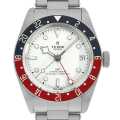 - ROLEXのディフュージョンブランドとして知られるチューダー。その2018年発表モデルヘリテージ・ブラックベイ GMTです。時針だけでなく、赤いGMT針と秒針の形が通称「イカ針」になっていることが特徴です。またこちらは、2023年に新たに登場した爽やかなオパラインダイアルになります。自動巻きCal.MT5652搭載。200m防水仕様。