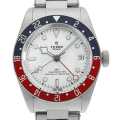 - ROLEXのディフュージョンブランドとして知られるチューダー。その2018年発表モデル"ヘリテージ ブラックベイ GMT"です。時針だけでなく、赤いGMT針と秒針の形が通称「イカ針」になっていることが特徴です。またこちらは、2023年に新たに登場した爽やかなオパラインダイアルになります。自動巻きCal.MT5652搭載。200m防水仕様。