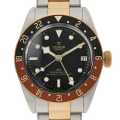 - ロレックスのディフュージョンブランドとして知られるチューダー。こちらは、2022年発表のヘリテージ ブラックベイ GMTです。ポリッシュ&サテン仕上げの41mmステンレススティールケースに2色に色分けされたベゼル。ブラックのセクションは夜間、ブラウンのセクションは昼間を表示しています。ブレスレットはスチール&イエローゴールドのコンビネーション。パワーリザーブ約70時間。自動巻きCal.MT5652搭載。200m防水。