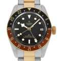 - ロレックスのディフュージョンブランドとして知られるチューダー。こちらは、2022年発表のヘリテージ ブラックベイ GMTです。ポリッシュ&サテン仕上げの41mmステンレススティールケースに2色に色分けされたベゼル。ブラックのセクションは夜間、ブラウンのセクションは昼間を表示しています。ブレスレットはスチール&イエローゴールドのコンビネーション。パワーリザーブ約70時間。自動巻きCal.MT5652搭載。200m防水。
