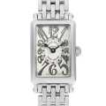 - フランクミュラーの豊富なコレクションの中でも、高い人気を誇るレクタンギュラーケースのロングアイランド。ダイヤル全面に広がるビザン数字やスペード型の時針など、1900年代初頭に一世を風靡したアールデコを髣髴とさせるクラシカルなデザインが特徴的です。アールが付いたケースシェイプは、手首のカーブに沿う事で抜群のフィット感が得られます。ミラー仕上げのインデックスが美しいモデルです。