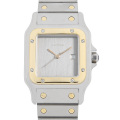 - カルティエが発売した初の腕時計であり、パシャやタンクフランセーズに並び人気の高い“サントス”ウォッチ。こちらはサントスガルベの初期モデルで限定カラーとされるインデックスの無いグレー文字盤が特徴で、武骨さを感じるストイックなデザインとコンビ素材の繊細さが調和しています。