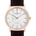 - パトリモニーは現在製造されているコレクションの中でも、最もオーソドックスでクラシカルなコレクションと言えます。そしてこちらは、日本限定わずか50本の稀少なモデルです。ローズゴールド製ケースは38mmと存在感はありますが、厚みが薄いので重さを感じさせません。シースルーバックからは、コートドジュネーブ装飾された芸術とも言える美しさの完全自社製自動巻きムーブメントCal.2455をご覧いただけます。