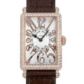 - フランクミュラーの豊富なコレクションの中でも、高い人気を誇るレクタンギュラーケースのロングアイランド。こちらはケースからラグにかけてびっしりとダイヤがセッティングされた贅沢なモデルです。文字盤全面に広がるビザン数字やスペード型の時針など、1900年代初頭に一世を風靡したアールデコを髣髴とさせるクラシカルなデザインが特徴的です。アールが付いたケースシェイプは、手首のカーブに沿う事で抜群のフィット感が得られます。