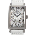 - フランクミュラーの豊富なコレクションの中でも、高い人気を誇るレクタンギュラーケースのロングアイランド。ダイヤル全面に広がるビザン数字やスペード型の時針など、1900年代初頭に一世を風靡したアールデコを髣髴とさせるクラシカルなデザインが特徴的です。ホワイトゴールドケースに定番人気カラーのシルバーギョーシェダイアルを組み合わせるとまた違った表情になりますね。