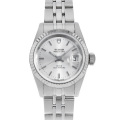 - シルバー文字盤と、シンプルなバーインデックスは、飽きの来ない雰囲気です。小振りなモデルで、とても女性らしい印象です。シーン問わず使用できるデザインが嬉しいモデルです。ホワイトゴールドのベゼルが華やかさをプラスしてくれます。