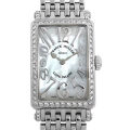 - フランクミュラーの豊富なコレクションの中でも、高い人気を誇るレクタンギュラーケースのロングアイランド。ダイヤル全面に広がるビザン数字やスペード型の時針など、1900年代初頭に一世を風靡したアールデコを髣髴とさせるクラシカルなデザインが特徴的です。こちらのモデルはダイヤモンドがセッティングされたケースに、白蝶貝のダイヤルにを組み合わせた、華やかなロングアイランドです。高級感あるフォルムでファッションアクセントからドレスアップまで美麗にきまるモデルです。