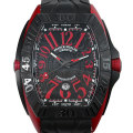 - 高度な技術力と美的な表現力が駆使された“コンキスタドールグランプリ”は、伝統的なトノー型ケースに、スポーティなアップライトインデックスや、レースカーのスピードメーターを彷彿とさせるホワイトとレッドで彩られたアグレッシブなハンズを配した、エレガントで男らしいモデルです。ケース素材としてF1や航空産業で使われる特殊合金「エルガ」を使用しています。ケースは高さが60mmを超えるマキシマムサイズで、今までならトゥールビヨン機能などを搭載したごく一部のハイエンドモデルにしか採用されなかったビッグケースが楽しめるとあって、多くの時計ファンから注目を集めています。