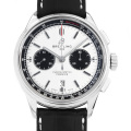 - プレミエシリーズからインスピレーションを受け作られたクロノグラフタイプの時計です。3時位置にクロノグラフの分積算計がデザインされた2カウンタークロノグラフ仕様となっており、9時位置にスモールセコンドサブダイアル、そして6時位置に日付が配されてた視認性の良いシンプルなモデルとなっております。COSC公認クロノメーターであり70時間以上のパワーリザーブを誇る自社製ムーブメントCal.ブライトリング01を搭載しており、シースルーバック仕様の裏蓋からはその緻密な動きを堪能することができます。