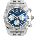 - ブライトリング初の完全自社開発・自社製造のクロノグラフキャリバーB01を搭載したモデルです。従来のキャリバーよりもスリムな設計のため、それを内蔵するケースもわずかに薄型化されています。ただしケースバックの造りなどは、さらに堅牢なものに改良されており、従来の防水性能を300mから500mへまでスペックアップさせたのは驚異的な成果と言えるでしょう。