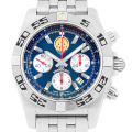 - ヨーロッパで最も古くから続いているアクロバット飛行チームの”パトルーユ・ド・フランス”。 その創設60周年を記念してデザインされた、世界限定600本の特別仕様のクロノマットです。空中を連想させる深みのあるブルーカラーの文字盤上に、「パトルーユ・ド・フランス」のエンブレムが描かれています。また、裏蓋にもエンブレムとエディションナンバーが刻印され、ブルーのラバーでモールド成型されたベゼルの数字は、特別感を演出しています。ムーブメントには自動巻き・ブライトリング01を搭載。500m防水。