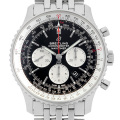 - 50年以上の歴史を持つナビタイマーの2018年発表モデルが入荷致しました。ブライトリングおなじみの双方向回転の回転計算尺ベゼル、スーパールミノバでコーティングされた時分針をサイズアップされた46mmの大型ケースに収めたモデルとなっております。サファイア製のケースバックからは、COSC公認であるブライトリング自社開発製造CAL.01の動きを堪能することができます。パワーリザーブ70時間、3気圧防水。