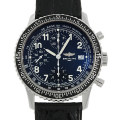 - 1950年代の旅客機のコックピット計器をモチーフにした“アヴィアスター”。スモールセコンドが傾斜していて、中心へと円がくぼんでいくデザインが特徴です。デイト表示、クロノグラフ機構、回転ベゼルを搭載した実用性の高い1本。既に製造が終了しており、年々見かけることが少なくなってきました。