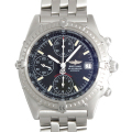- クロノマットをベースに誕生し、アメリカ空軍のステルス偵察機の愛称がつけられたブラックバード。ブラックバードといえばブラックダイアルに12時位置のアウトサイズデイトが近年のデザインですが、こちらのモデルは、プッシュボタンがタマネギ型で、文字盤のデザインも現行のものとは異なります。通常のクロノマットと違い、全てつや消し仕上げになった外装も特徴的です。