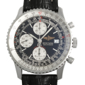 - 1952年の発表から、航空時計のシンボルとして輝き続ける“ナビタイマー”。世界初の航空計算尺付きクロノグラフであり、パイロット協会AOPAの公式時計に認定された永遠の名作です。こちらはブライトリングとしては珍しいサテン仕上げのケースを備えたモデルです。12時位置に30分計、6時位置に12時間計、9時位置にスモールセコンドを搭載。航空計算はインナーベゼルを回転させて計測します。