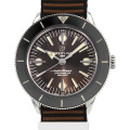 - 米国のアパレルブランド「アウターノウン(outerknown)」との3度目のコラボモデル。健全な海洋を目指したサステナブルな取り組みが特長で、同じ目的の活動を行うブライトリングとの強固なパートナーシップを結んでいる。ブラウンのダイヤルがヴィンテージ感ある仕上がりですが、57年発売の初代スーパーオーシャンのデザインからインスパイア。ベゼルはセラミック性で耐衝撃性に優れています。ベルトは「ECONYL(エコニール)」を採用。廃棄物を利用して生み出された素材で、頑丈且つアップサイクルに優れた、正にこのモデルに相応しいベルトです。搭載ムーブメントは「B10」。10気圧防水、パワーリザーブ50時間と、日常使いに最適なムーブメントとなっています。