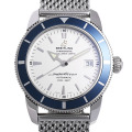 - ブライトリングを代表するダイバーズ・コレクション「スーパーオーシャン」。こちらは1957年に発表された初代スーパーオーシャンへのオマージュとして創作されたモデルです。当時のブライトリング・ロゴや独特の時針、メッシュブレスレットなどオールドモデルの雰囲気が楽しめるモデルです。ムーブメントにはブライトリング17 自動巻クロノメーターを搭載。42時間パワーリザーブに対応。200m防水。
