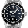 - ヘリテージ(遺産・伝統)の意味するとおり、1957年に発表されたダイバーズウォッチを現代に蘇らせたスーパーオーシャン・ヘリテージ46。SS/アルミ合金ベゼル、アロー型時針、50年代当時のブランドロゴなど、往年の雰囲気を見事に再現しています。このモデル専用に作られたメッシュタイプのクラシックブレスが特徴的です。