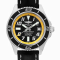 - 究極のダイバーズ・ウォッチ“スーパーオーシャン”の直径42mmモデル。ブライトリングは金属製の型を設計し、数字の周囲を彫りさげ、そこにブラックラバーをモールド成型した後、さらに削り出すという複雑な工程を踏むことで、フラットで美しく強靭なベゼルを完成させました。1,500m防水やオートエスケープバルブなど、真のプロフェッショナルのための性能を備えています。ブラック×イエローのコントラストが水中でも見やすくなっています。アウトドアやスポーツシーンでも活躍するタフでスタイリッシュな1本です。