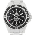 - スーパーオーシャンシリーズから「スーパーオーシャンII」が登場。従来のモデルはケース厚約16.5mmでしたが、こちらは約13.3mmとスリムになり軽量化されました。ムーブメント『Cal.ブライトリング17』を搭載。信頼性の高いムーブメントと実用的な機能・デザインに仕上がった一本です。こちらは、ブラックダイアルにバーインデックスを配した、クールな印象の日本限定モデルです。