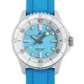 - 男女問わず使いやすいサイズ感で衝撃・砂・塩水にも強く、アウトドアやマリンスポーツに最適な1960年代のダイバーズウォッチの美学を現代風に再解釈した1本となっています。ファッション性と機能性を両立したダイバーズウォッチとして、日常使いからアクティブなシーンまで幅広く活躍します。特にターコイズブルーの文字盤は、夏のスタイルにもぴったりです。
