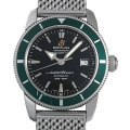 - ブライトリングを代表するダイバーズ・コレクション「スーパーオーシャン」。こちらは1957年に発表された初代スーパーオーシャンへのオマージュとして創作されたモデルです。当時のブライトリング・ロゴや独特の時針、メッシュブレスレットなどオールドモデルの雰囲気が楽しめるモデルです。