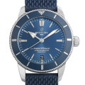- 生誕60周年を超えるスーパーオーシャンシリーズの伝統的なデザインと最先端技術が融合したヘリテージシリーズです。ブライトリング自社開発製造キャリバーB20を搭載。逆回転防止機能付きのベゼルには120の歯がついており正確な位置調整とスムーズな回転を実現しています。6時位置には視認性の良いデイト表示があります。パワーリザーブは安定の70時間。ブルーのエアロ クラシック・ラバーストラップを採用しており使い勝手の良いモデルに仕上がっています。