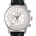 - 1940年代の名作“ダトラ”を原型にもつ“モンブリラン ダトラ”。回転計算尺、タキメーター、トリプルカレンダー、1/100時間目盛の他、サブダイヤルによる24時間表示を備えています。またケースバックには世界主要都市のタイムゾーンが刻まれています。「時計ではない、計器である。」1990年代初頭のブライトリングのキャッチコピーを、そのまま体現したようなモデルです。