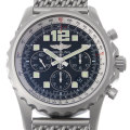 - 第二次世界大戦中に空軍に供給された爆撃タイマーをオマージュして作られた「クロノスペース」の自動巻モデルです。こちらはブラック文字盤に視認性のよい大きめのインデックスがデザインされています。パイロットの計器としてすべての性能を備えている機能性に優れたモデルです。